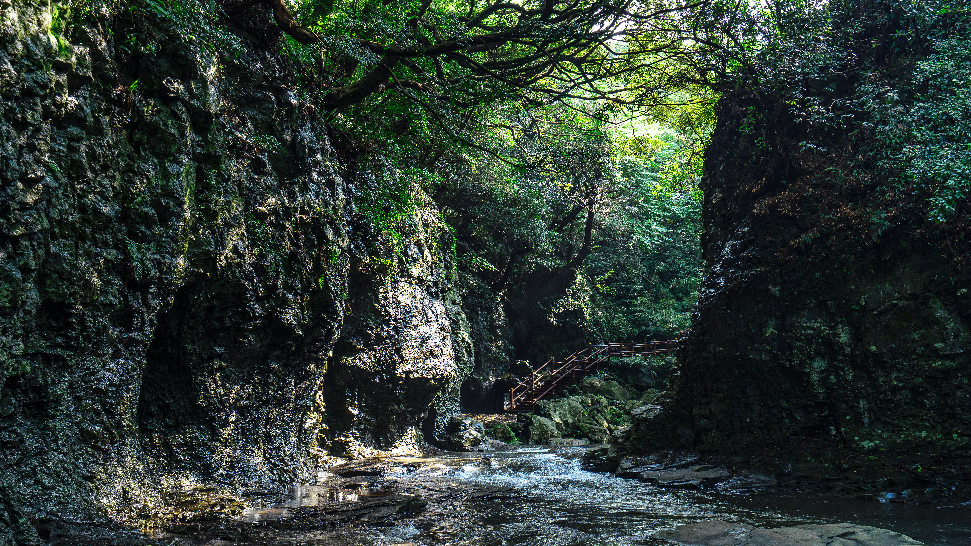 안덕계곡은 제주 서귀포시 안덕면에 위치한 난대림 원시 계곡으로, 300여 종의 상록수림이 계곡 양옆을 가득 메우고 있습니다. 구실잣밤나무, 후박나무, 동백나무 등이 빼곡하게 자라 사계절 내내 초록빛 풍경을 유지하며, 평평한 암반 위로 맑은 물이 흐르는 모습은 다른 제주 계곡과는 전혀 다른 분위기를 자아냅니다.
